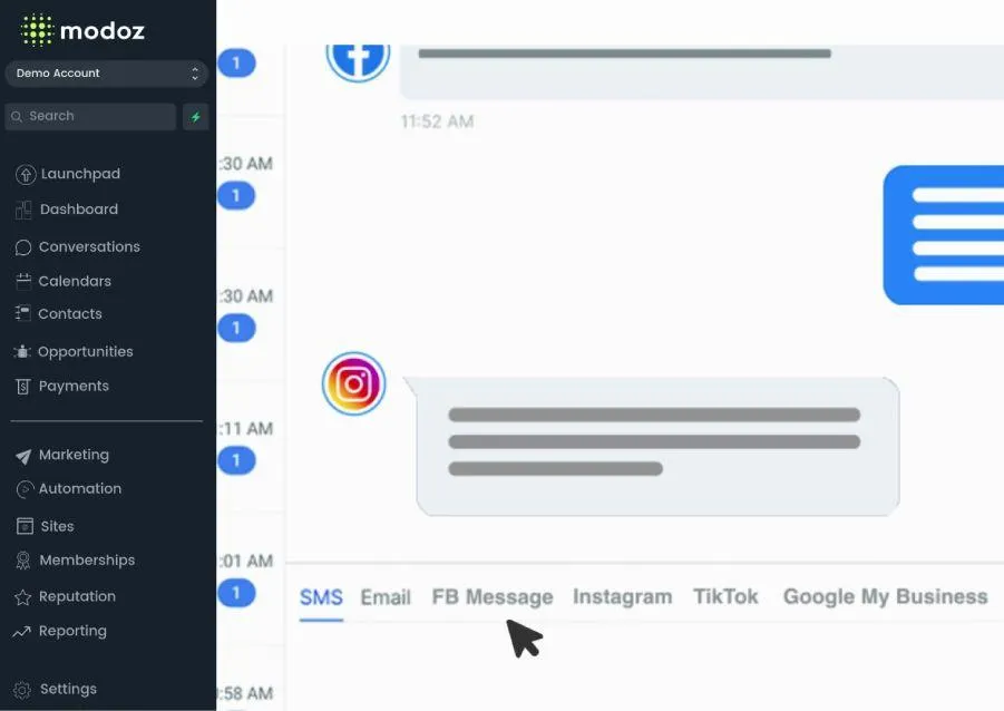 Yes, Modoz AI handles all your marketing needs including texting SMS, Email, Direct Messages, Live Chat, Google My Business™, Facebook™ Messages and more!
